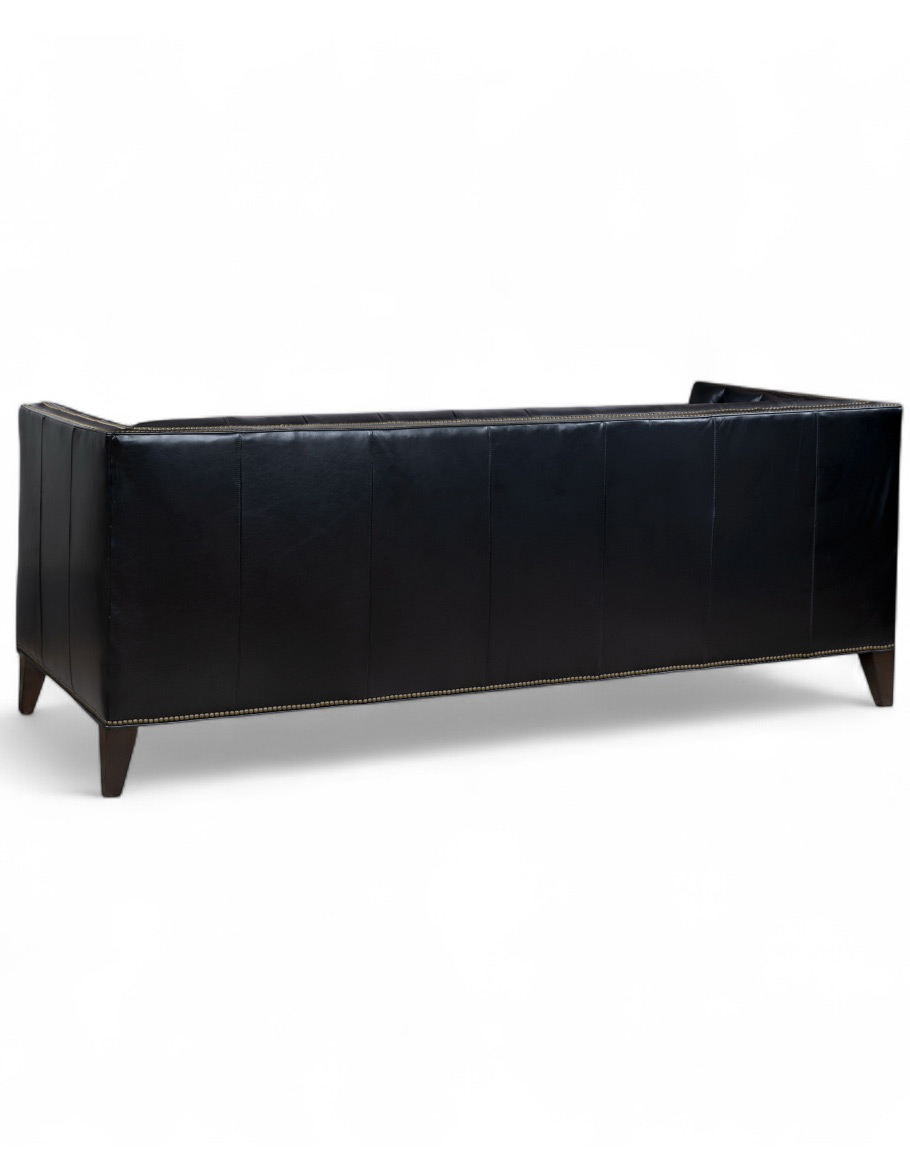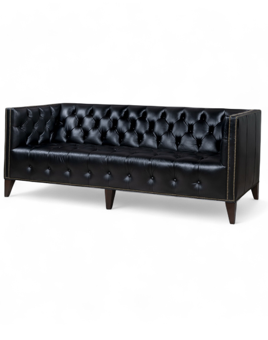 The Kingston Black Tufted Leather Sofa is a bold expression of refined Western luxury. Upholstered in full-grain leather dyed in an elegant obsidian black, this sofa captures attention with its dramatic depth and natural sheen. Each hide is carefully selected for its supple texture and durability, ensuring the Kingston not only looks striking but will also withstand decades of use.